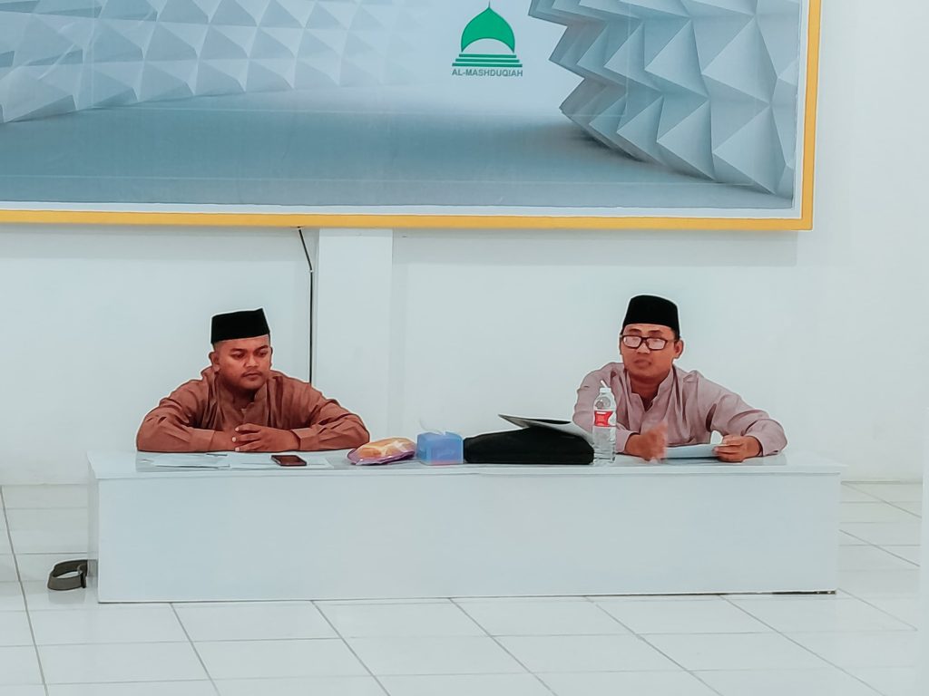 Al-Mashduqiah, Sabtu, 21 Juli 2024 – Direktorat Pengasuhan Santri Pondok Pesantren Al-Mashduqiah menggelar rapat bersama Musyrif Maskan dan para wali kamar, bertujuan memperkuat layanan kepengasuhan santri berbasis kamar. Rapat yang dilangsungkan di Aula Fatimah mulai pukul 21.00 hingga 23.00 WIB ini dihadiri oleh Ust. Dr. H. Moh. Rifa’i, M.Pd. selaku Direktur Pengasuhan Santri, serta seluruh Musyrif Maskan dan wali kamar dari putra dan putri.