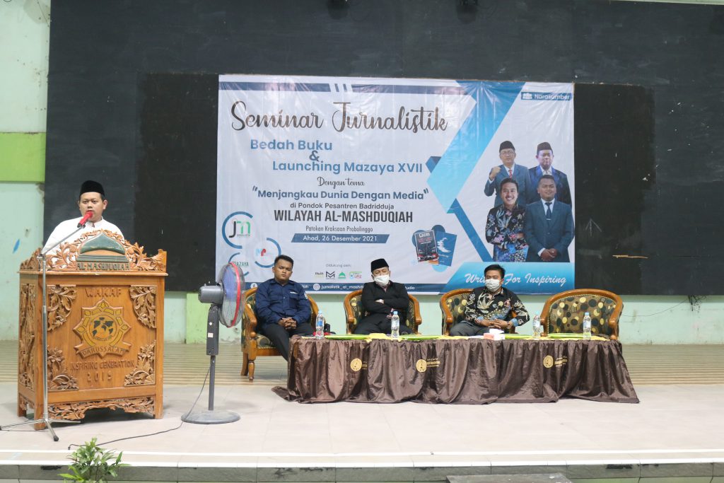 Selain itu, Jurnalistik Al-Mashduqiah yang sebelumnya hanya aktif menerbitkan dan mencetak majalah dinding Mashduqiah Pos kini juga berekspansi ke berbagai platform sosial media seperti Facebook, Instagram dan Youtube. Peserta seminar juga tak hanya disuguhkan dengan materi kejurnalistikan, melainkan juga ada launching majalah MAZAYA ke-XVII dan bedah buku kumpulan cerpen ‘Rembulan di Bibir Teluk’ yang dikarang oleh salah satu abituren pesantren Al-Mashduqiah yaitu Ust. Rosyid H.W.